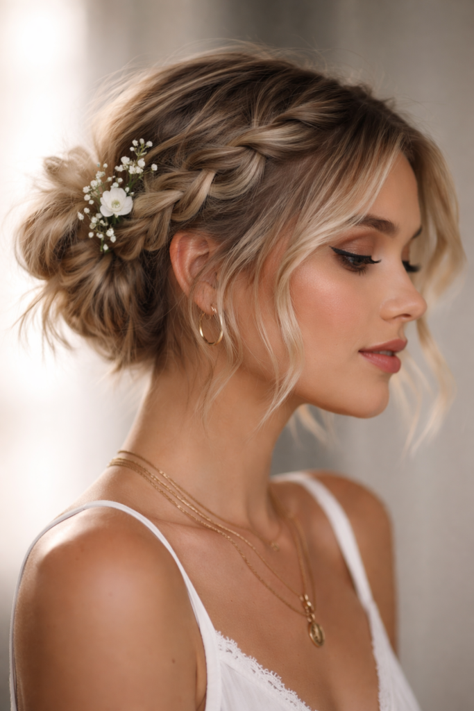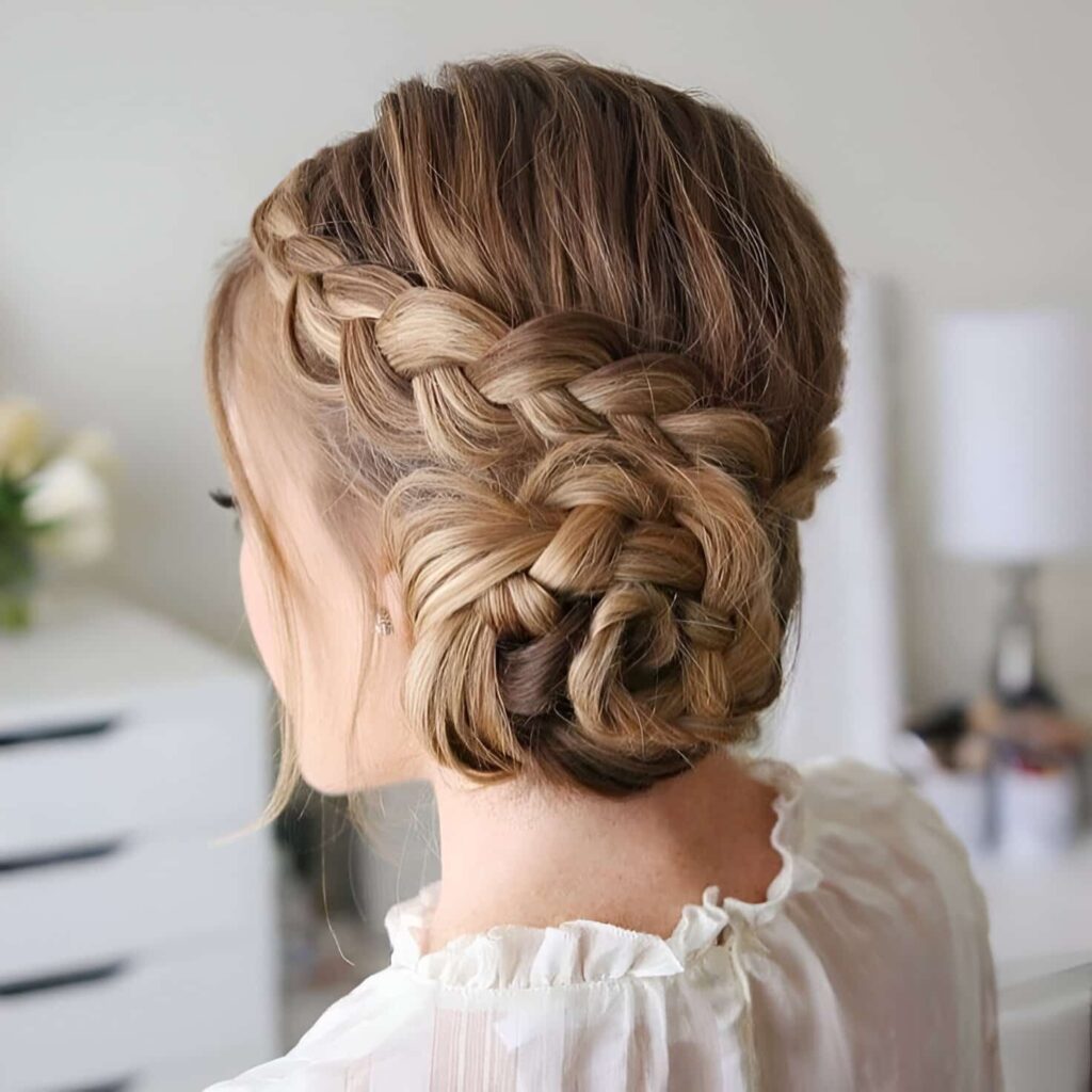 The braided side bun combines structure and softness in a beautifully balanced way. Placing the bun to the side adds visual interest and a romantic touch. The braid detail enhances the style without overpowering it. The overall vibe is elegant, feminine, and refined.