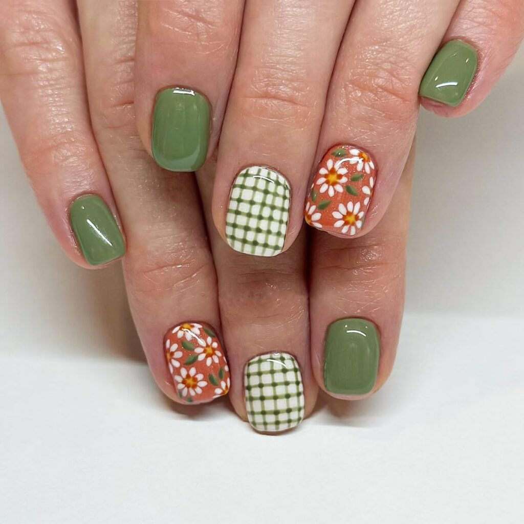 Short Green Plaid Nails