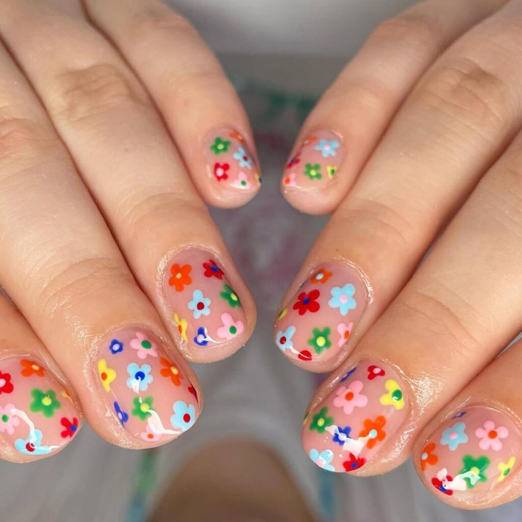 Playful Floral Nails bring a vibrant, lively charm to a polished manicure. The carefully placed floral details provide a whimsical touch while remaining elegant and fashion-forward. Perfect for spring or festive occasions, this design adds personality without compromising sophistication. Its colorful accents feel fresh and cheerful, creating a manicure that is both trendy and refined. The overall effect is joyful yet professional, ideal for modern nail enthusiasts.