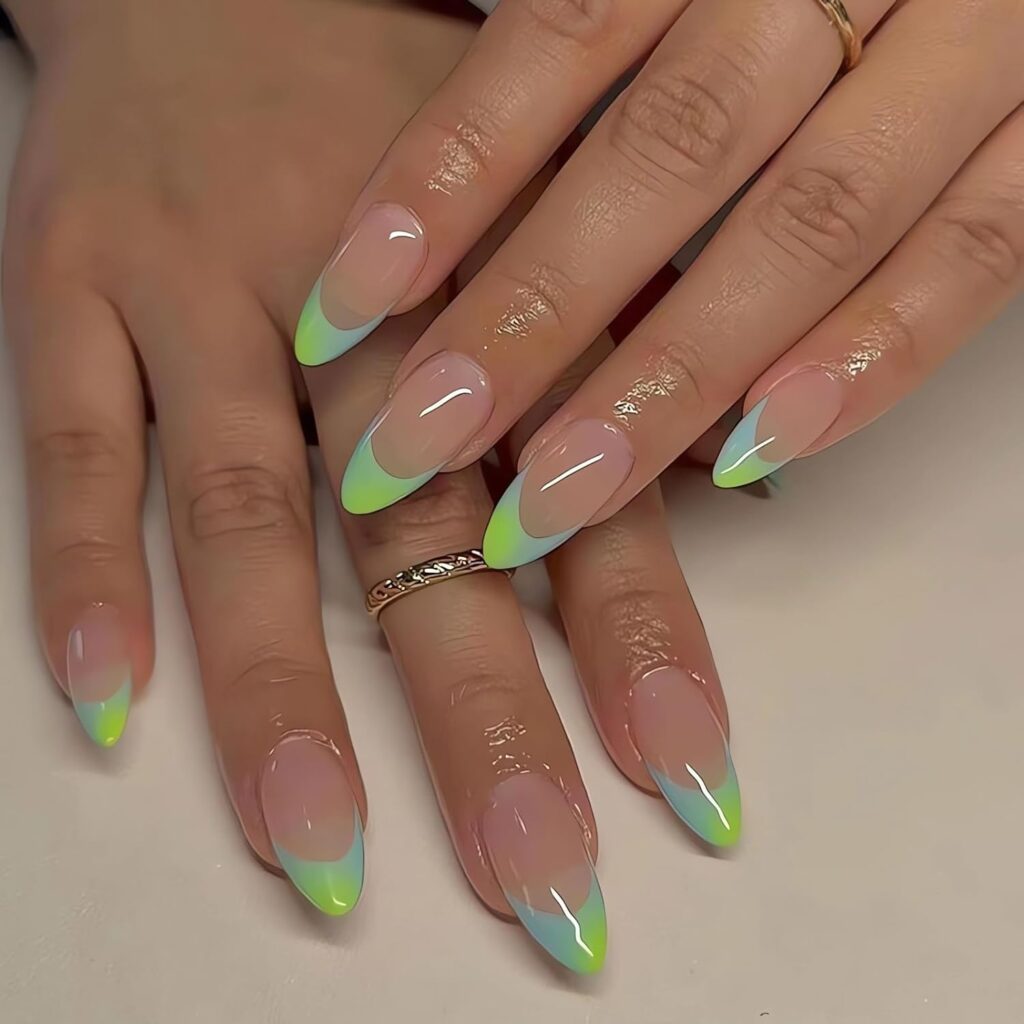Nude Green Ombre Almond French Press-On Nails