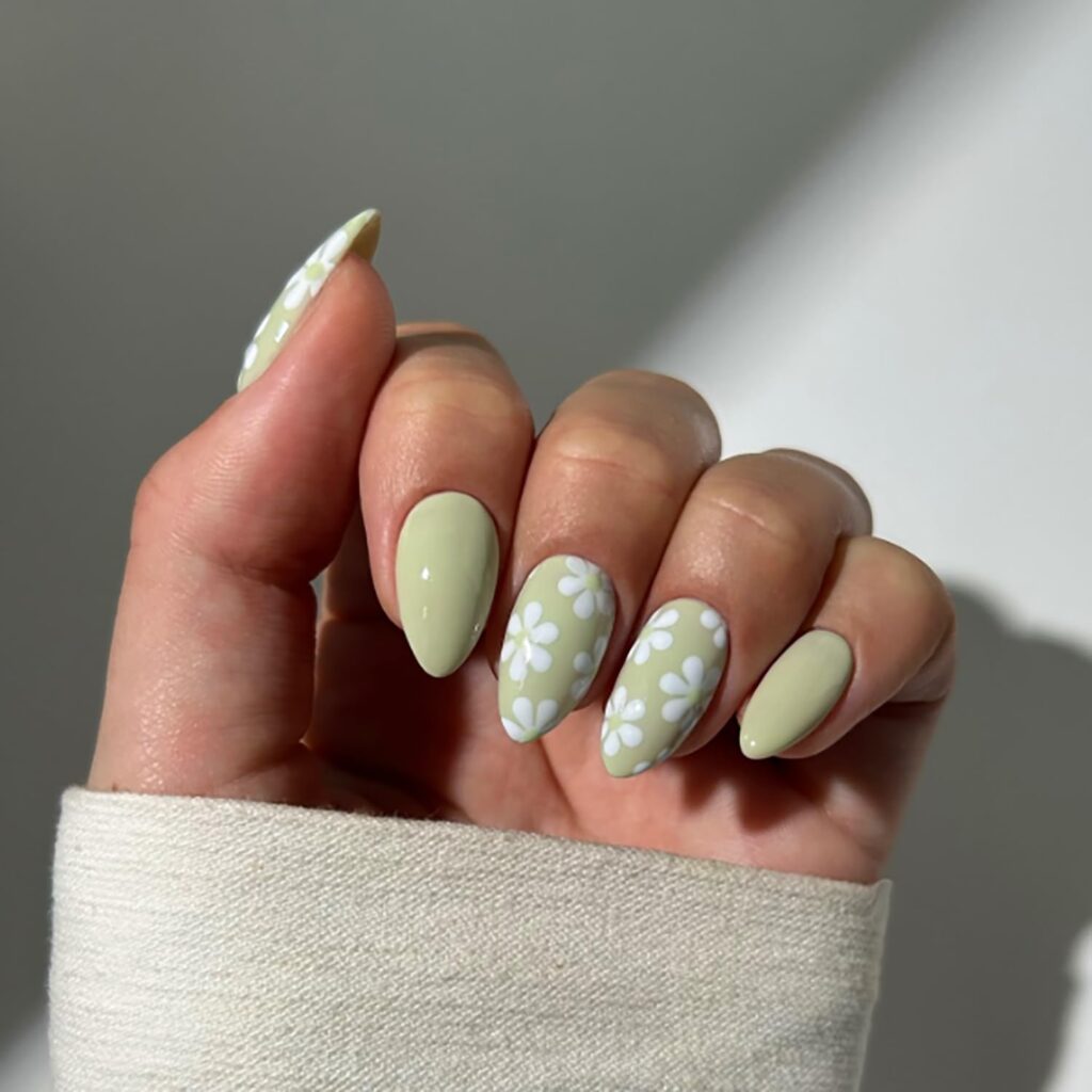 Green flower nails are fresh and stylish. The soft green tones also highlight delicate floral designs for a feminine, polished look. Ideal for press-on or acrylic nails, this manicure works for spring, casual events, or festive occasions. In addition, the flowers add charm while keeping the nails professional. Green flower nails are trendy, Instagram-ready, and versatile. Overall, this manicure is chic, fresh, and eye-catching.