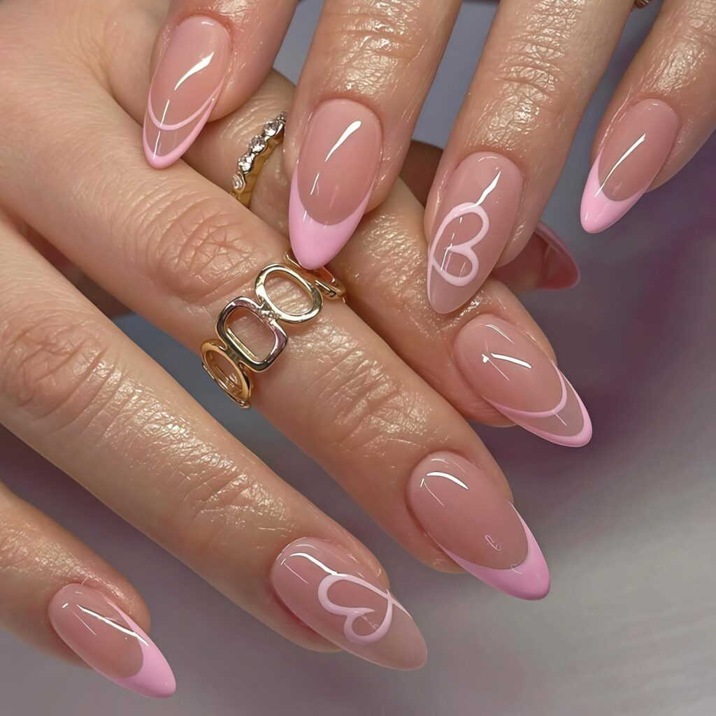 Blush Ombre Almond Nails with Minimal Heart Detail
