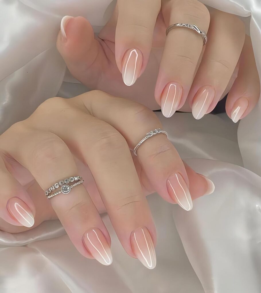Pink and White Ombre Nails create a seamless blend that feels soft and elegant. The gradual transition delivers a clean, romantic aesthetic. This design feels timeless, polished, and universally flattering. Perfect for those who love understated sophistication. It works beautifully for any occasion. A classic ombre look with lasting appeal.