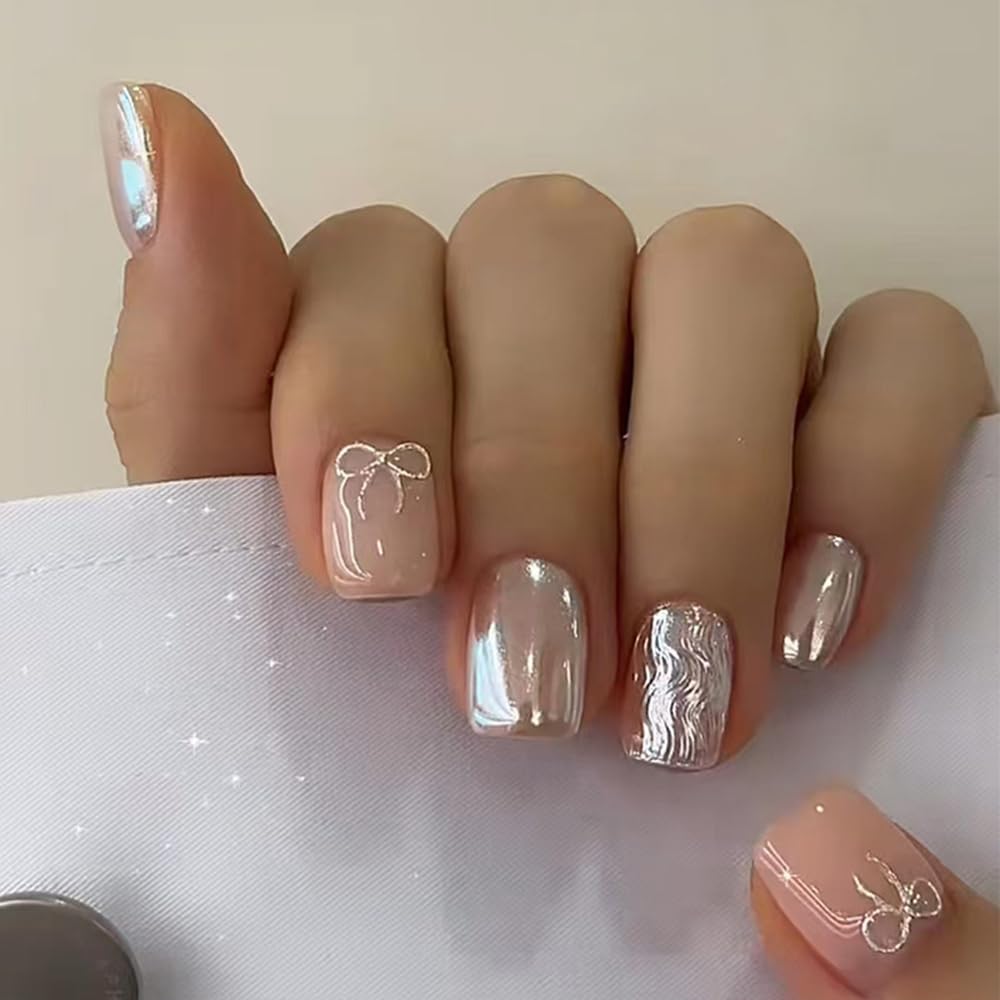 Silver Side Decorative Nails offer a subtle twist on classic elegance, highlighting the nails’ edges with shimmering metallic accents. The delicate silver detail adds dimension and a contemporary flair without overpowering the overall design. This manicure is perfect for those who appreciate understated luxury, combining simplicity with eye-catching sophistication. The side embellishments draw attention to the nail shape while adding a touch of glamour. Ideal for modern, fashion-conscious wearers, these nails balance refined style with a playful metallic twist. They are a polished, professional choice for both casual and formal occasions.