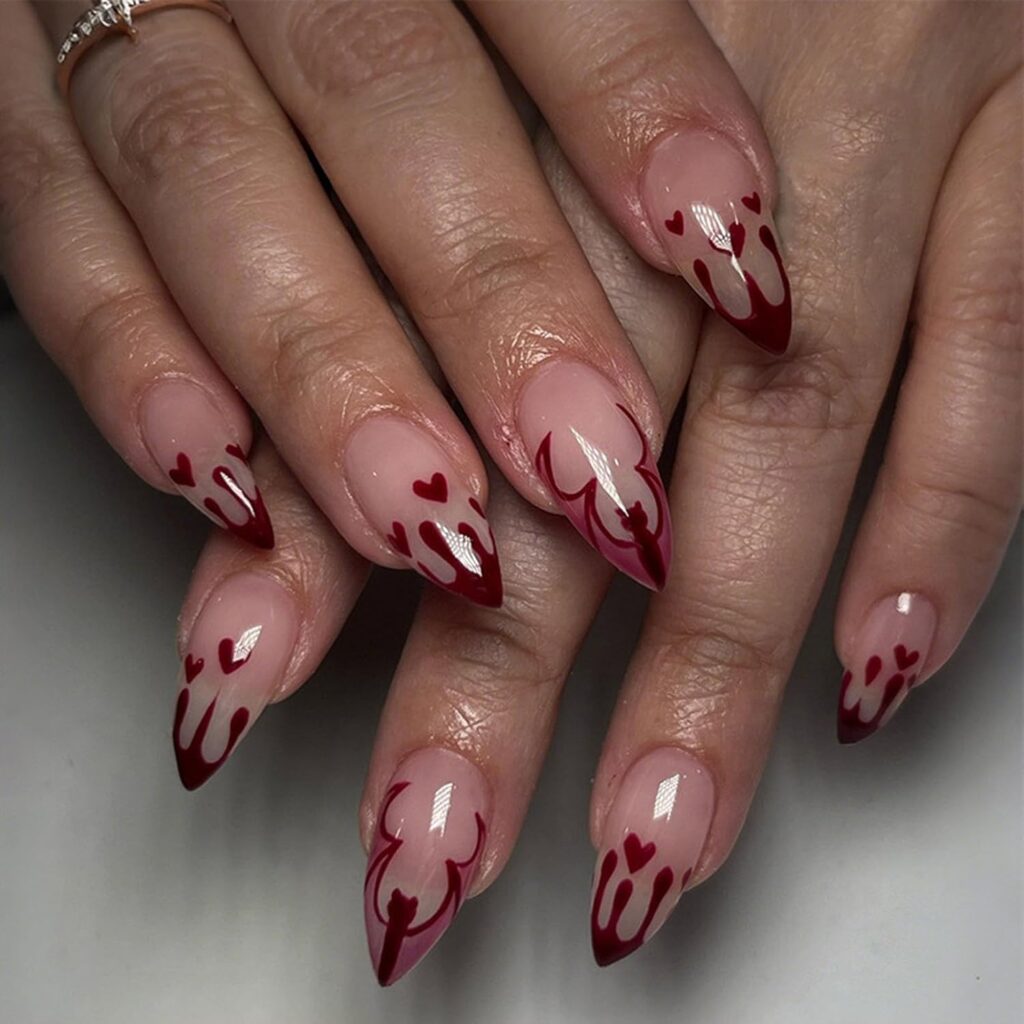 Fire pattern nails bring intensity and drama in a stylish, controlled way. The design feels bold, expressive, and undeniably confident. It adds a striking visual element while remaining polished. This look is perfect for those who enjoy statement nail art. The overall aesthetic feels powerful yet trendy. A daring design that still feels fashion-conscious and refined.