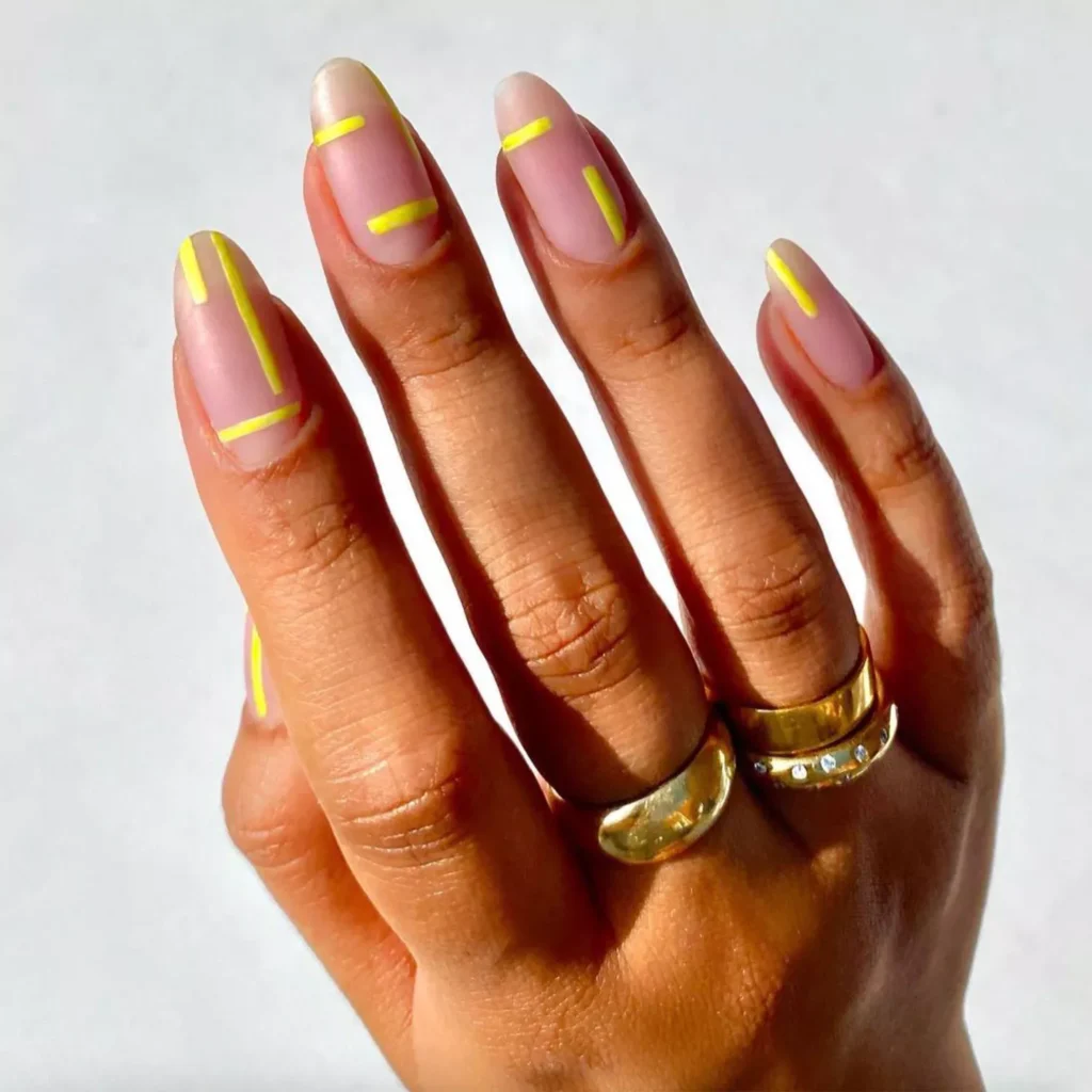 Yellow Stripe Nails