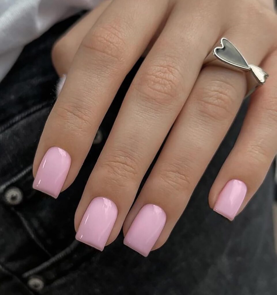 Pastel Pink Short Square Nails