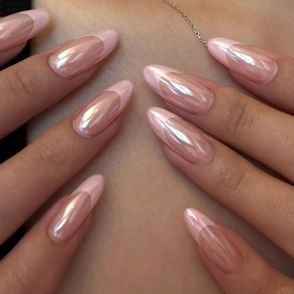 Elegant Pink Chrome Almond Nails