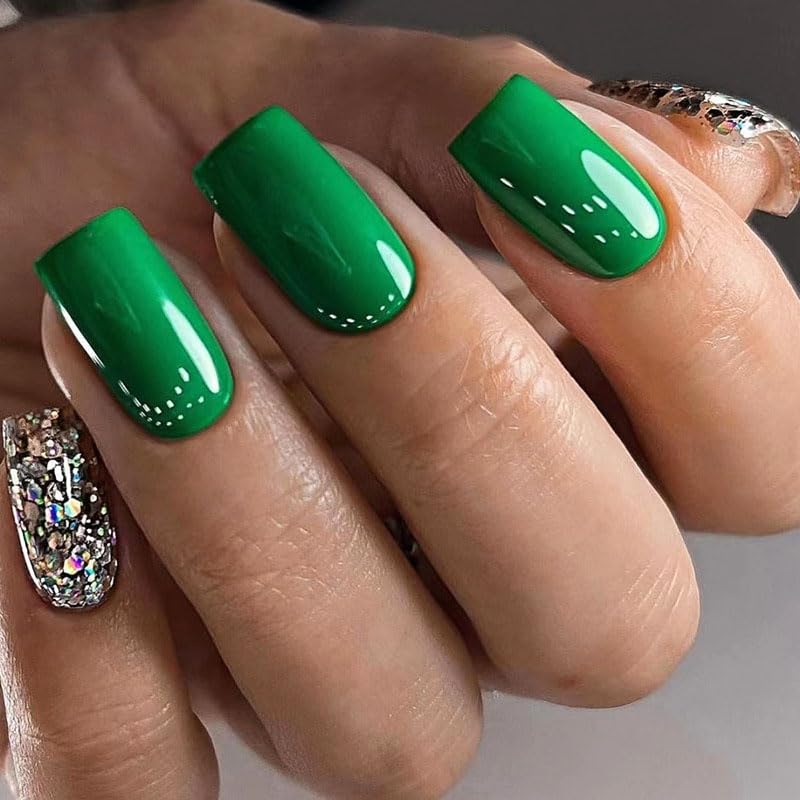 Medium Square Green Fashion Nails