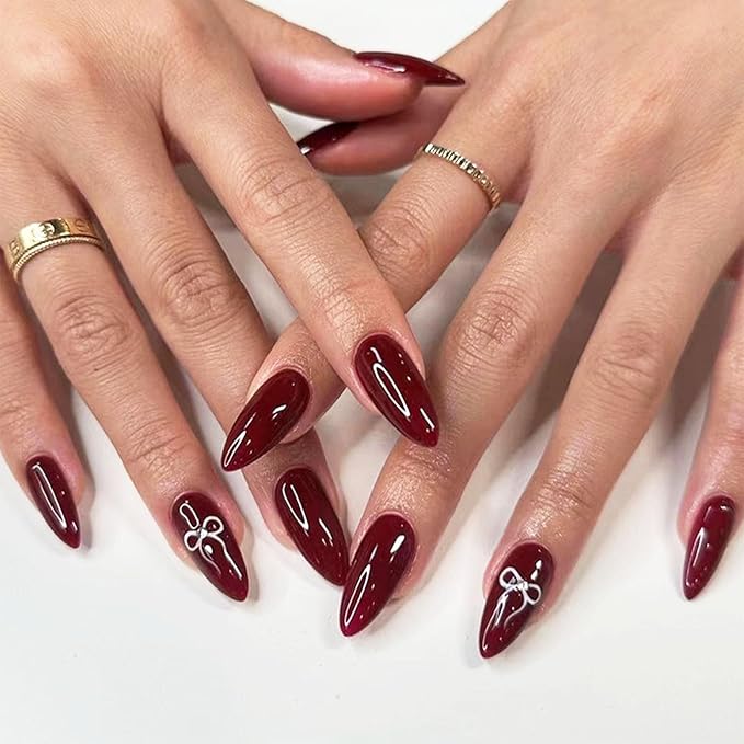 Medium almond press on fake nails close the collection with timeless sophistication. The almond shape offers a graceful and flattering silhouette. Designed for effortless styling, the overall vibe feels polished and modern. This look works seamlessly for both casual and elevated occasions. With balanced length and refined form, it delivers enduring appeal. Together, these designs highlight how press on nails can feel elegant, expressive, and confidently chic.
