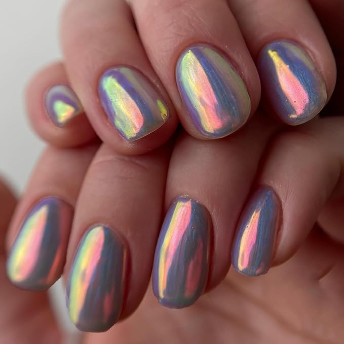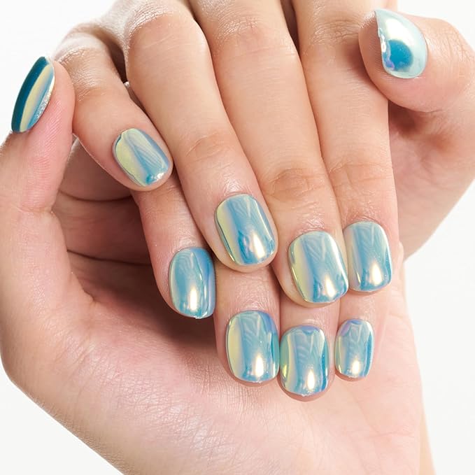 Handmade Blue Chrome Fall Gel Glue on Nails