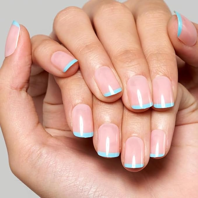 Light blue French tip nails refresh the classic French style with a cool-toned update. The soft blue tips add interest while keeping the look clean. Designed to feel light and polished, they suit everyday elegance. The overall vibe is calm and fashion-forward. Perfect for understated seasonal looks. This design offers a modern take on tradition.