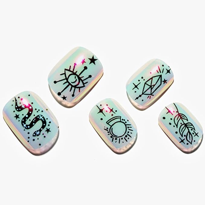 White Pearl Mermaid Chrome Fall Gel Glue on Nails