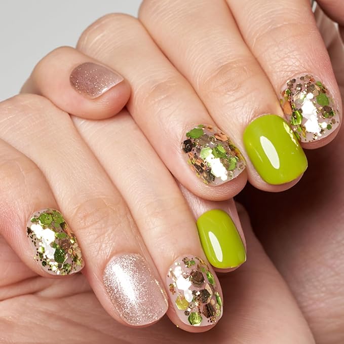 Handmade Glitter Green with Sliver Fall Gel Glue on Nails