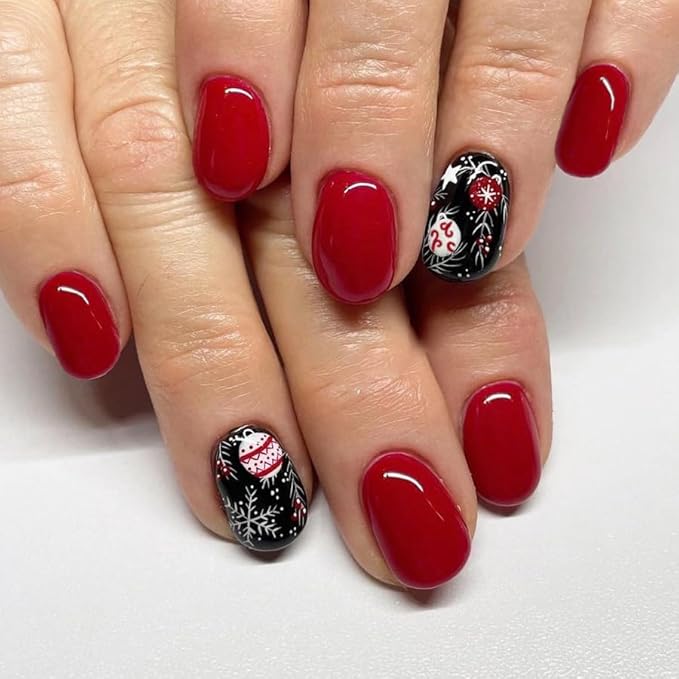 Christmas press-on nails in a short square red style feel bold and festive. The red color captures classic holiday energy. Short square shape keeps the look tidy and wearable. This design is confident yet controlled. It pairs easily with seasonal outfits. A timeless choice for Christmas-ready nails.