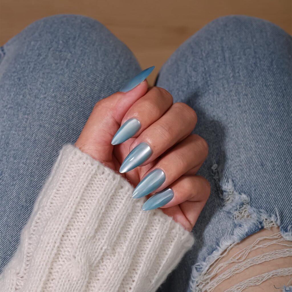 Light blue baby nails create a gentle, soft-focus look that feels fresh and modern. The delicate shade brings a smooth, refined finish that works beautifully for everyday wear. This style feels effortless yet intentional, making it ideal for a chic, low-key manicure. Its subtle tone adds elegance without distraction.