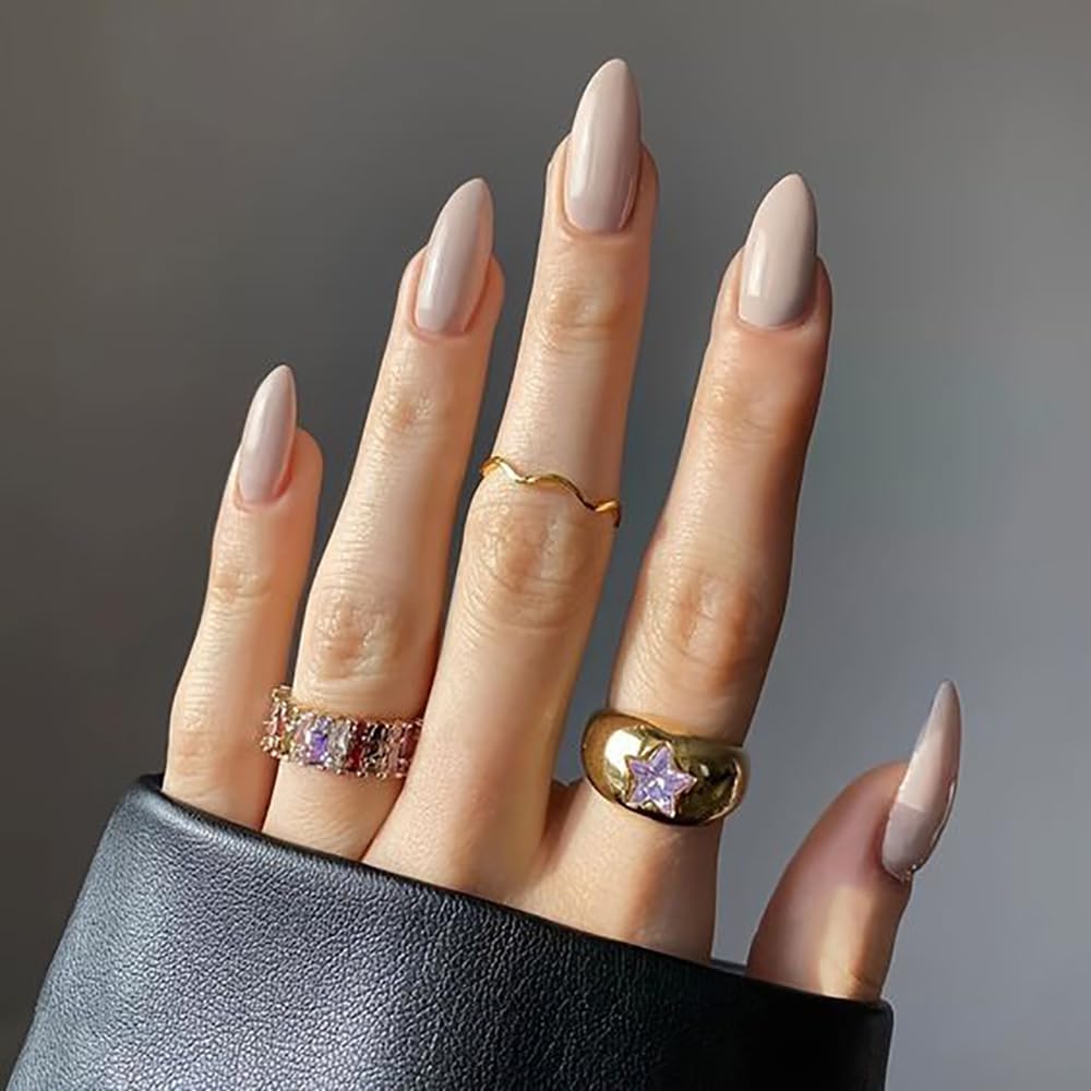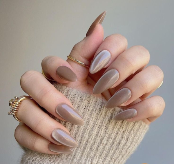 Glossy taupe nails offer a refined, modern look with an understated sense of elegance. The balanced taupe tone feels neither too warm nor too cool, making it incredibly versatile. A high-shine finish elevates the simplicity of the color, giving the nails a polished and luxurious appearance. This design feels professional yet fashion-forward, perfect for everyday wear or formal settings. It’s a timeless neutral that aligns beautifully with long-lasting nail trends.