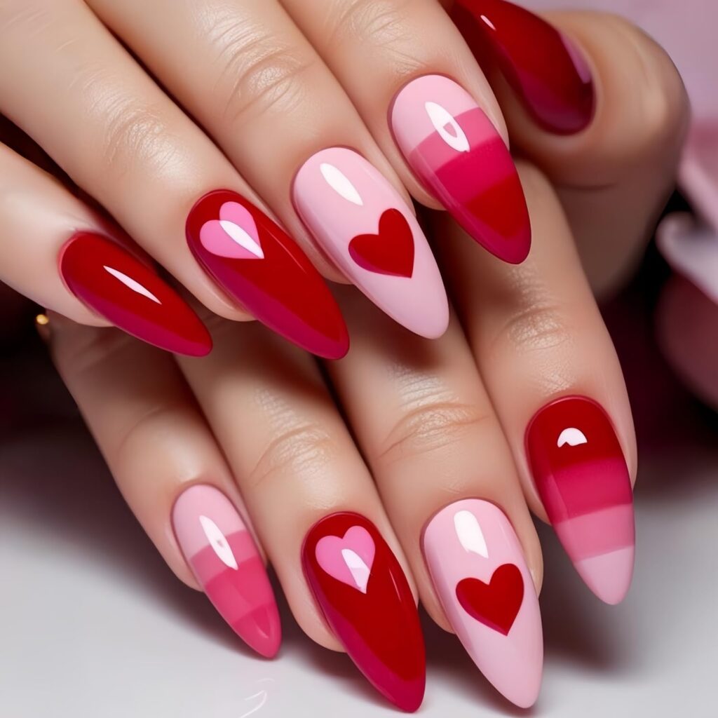 Pink and Red Heart Nails